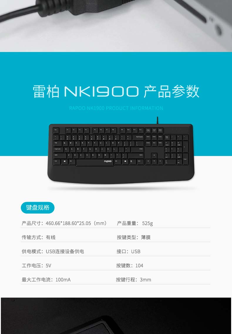 商品名称:雷柏 键盘 有线游戏办公家用商务笔记本电脑单键盘防水设计 nk1900