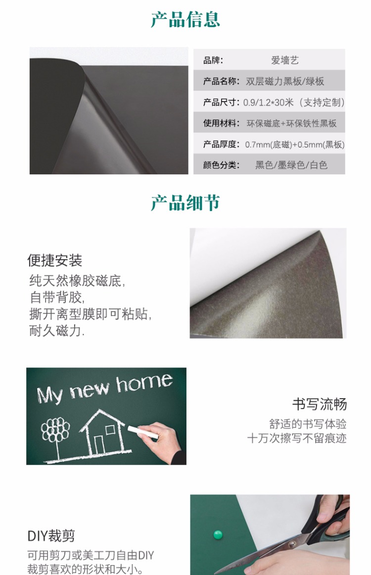 商品名称:国产 黑板墙贴自粘墙贴家用装饰可擦写双层磁性加厚黑板贴