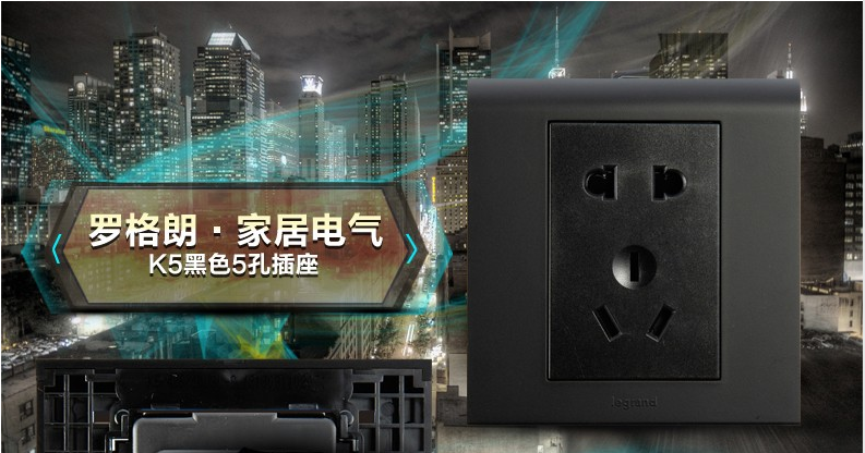 罗格朗 黑色二三插五孔开关插座面板家用86型5孔多孔墙壁插板
