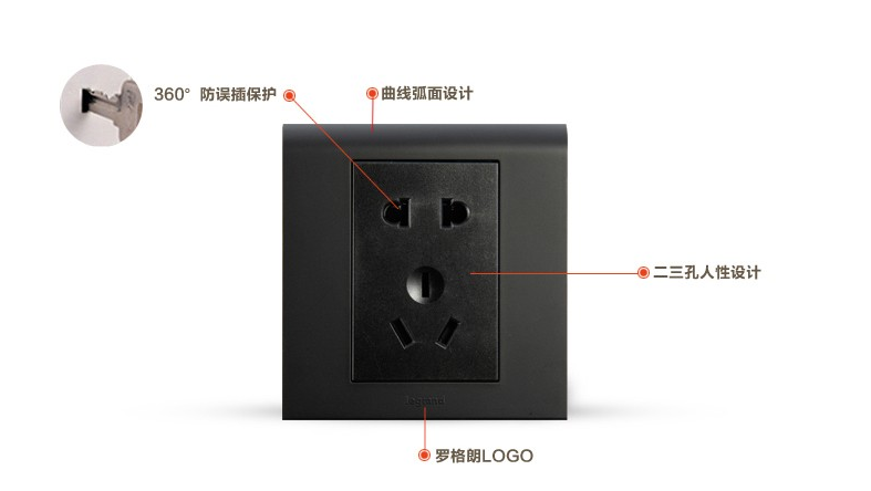 商品名称:罗格朗 黑色二三插五孔开关插座面板家用86型5孔多孔墙壁插板