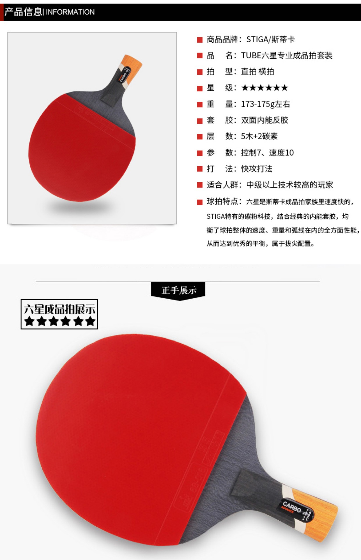 商品名称:斯帝卡 乒乓球拍STIGA五星乒乓球拍底板成品拍5星兵乓球拍