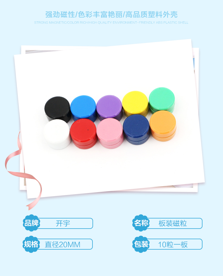 商品名称:开宇 黑板吸铁石圆形磁铁片磁扣玩具彩色白板强力磁贴磁钉磁粒笑脸教具