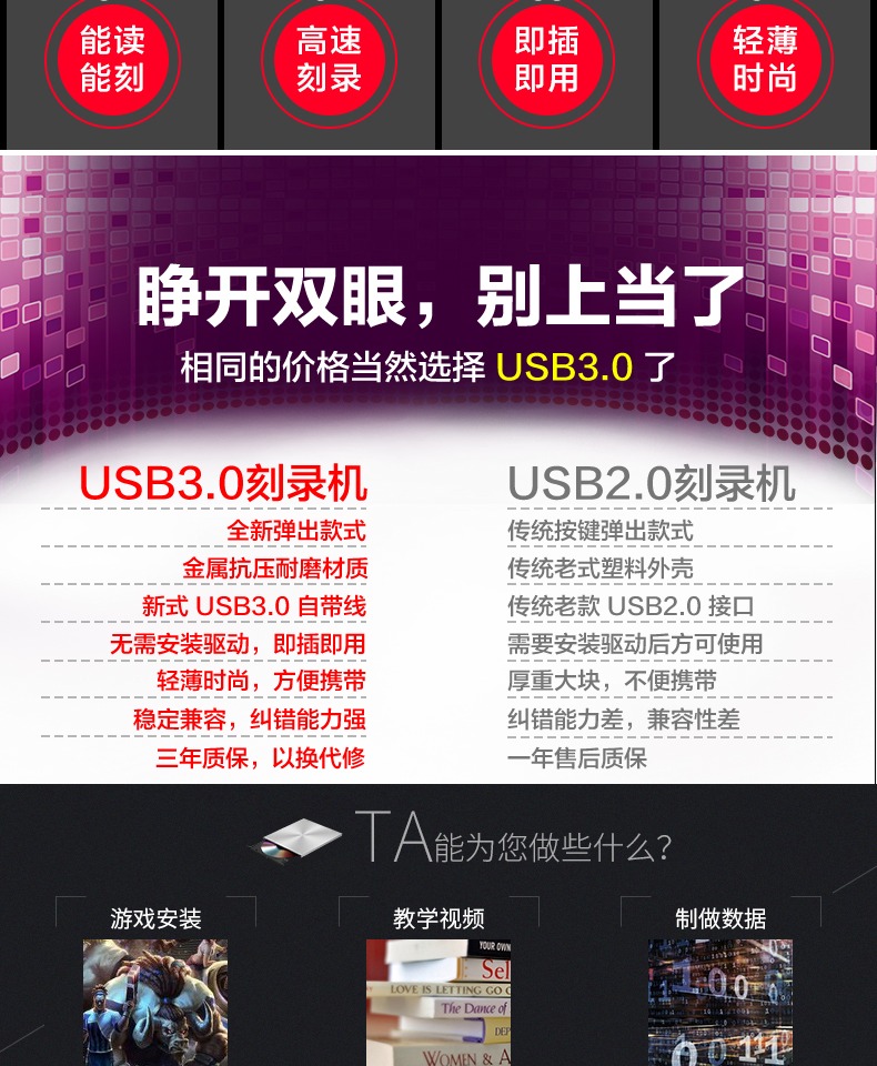 商品名称:三星 外置光驱 移动光驱DVD刻录机 SE-218