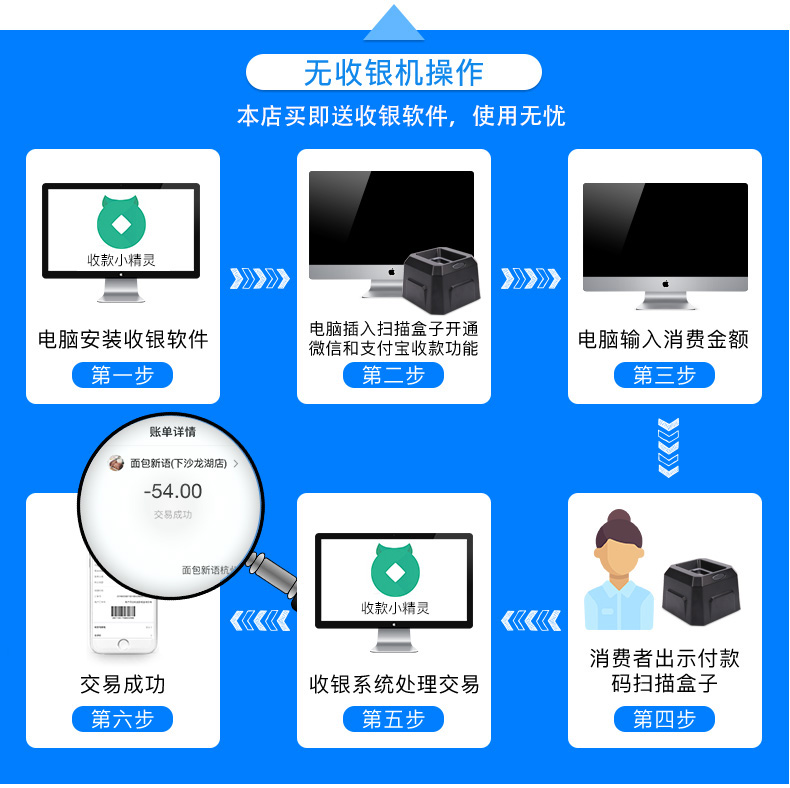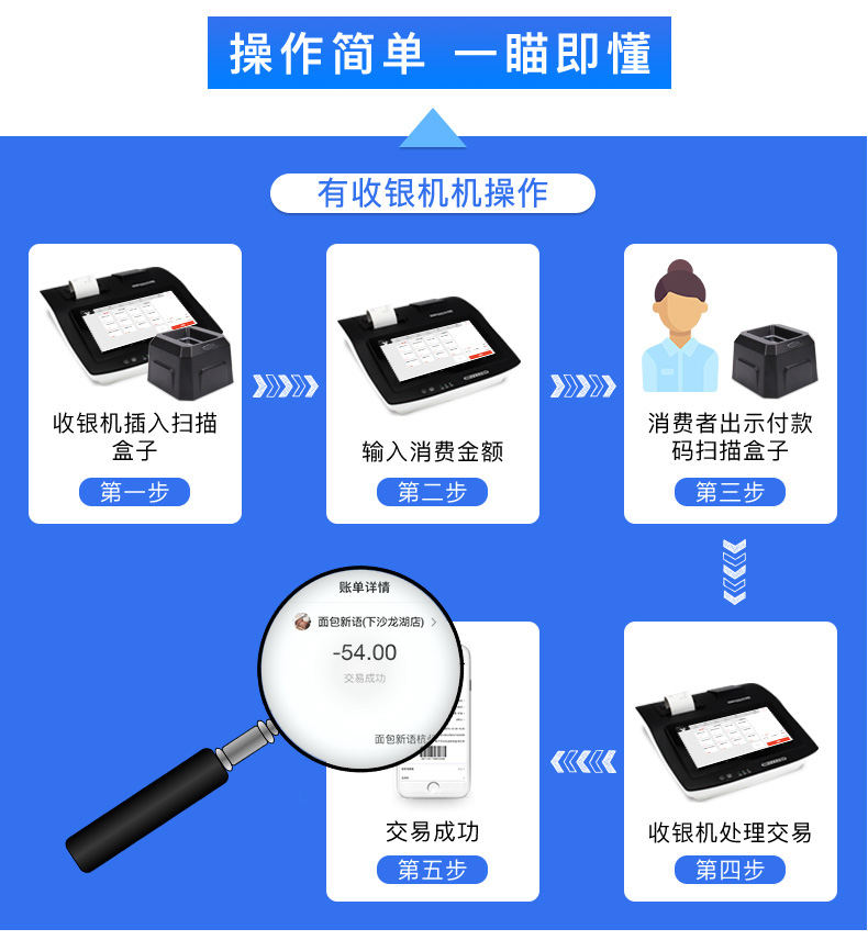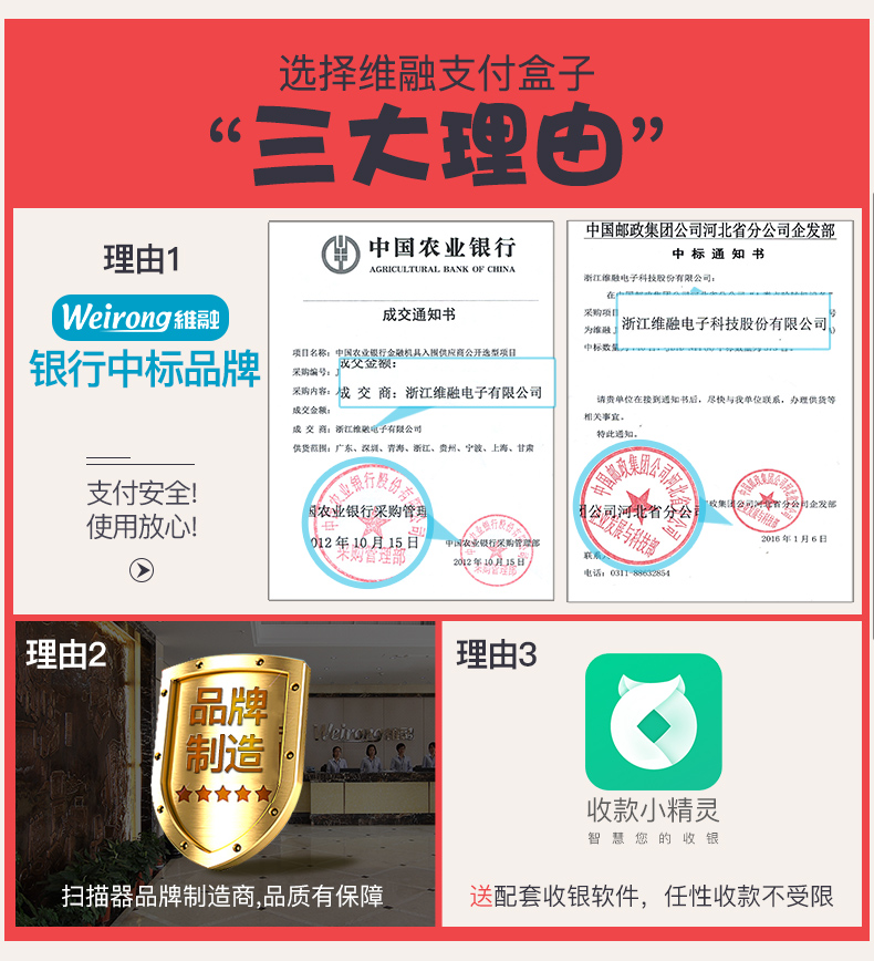 商品名称:维融 二维码扫描器扫码器扫描平台付款器支付宝微信收款机收银盒子