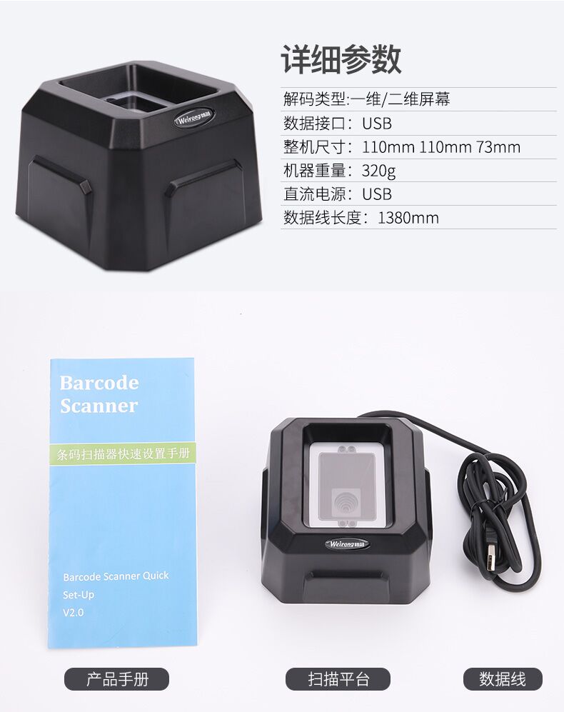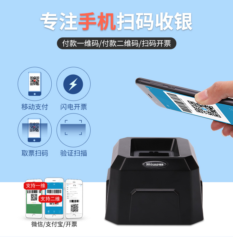 维融 二维码扫描器扫码器扫描平台付款器支付宝微信收款机收银盒子