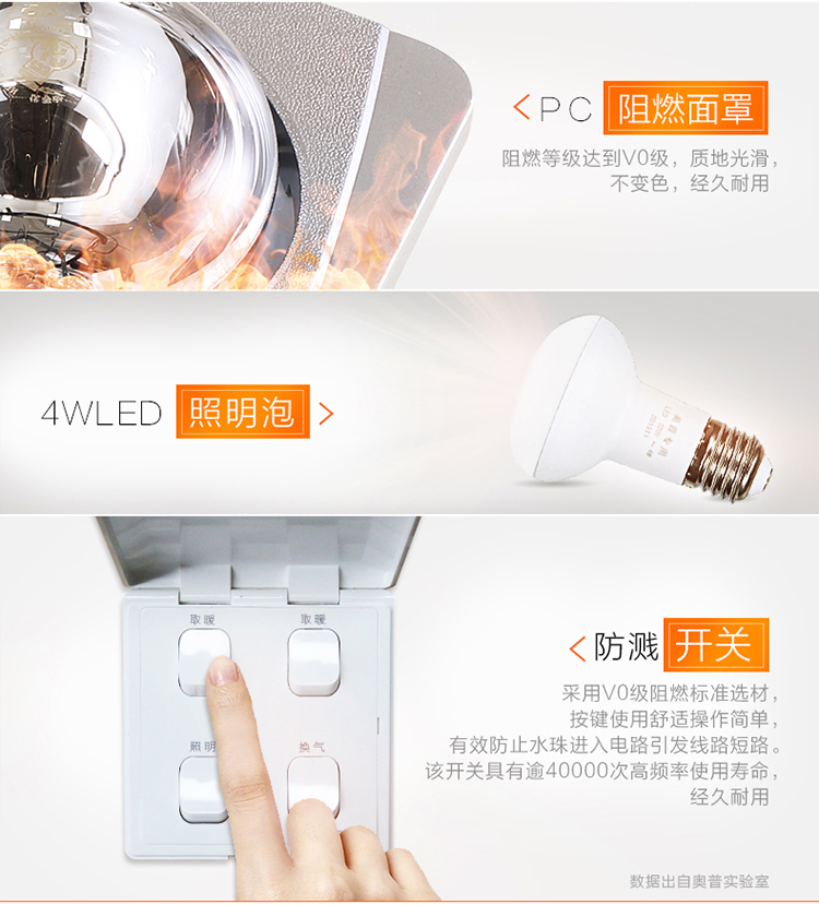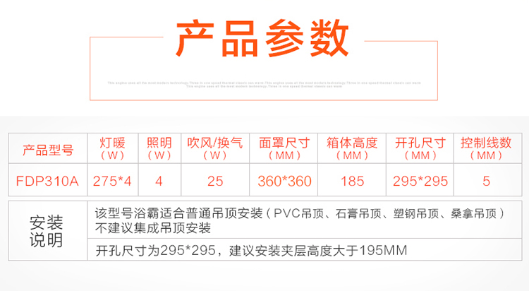 商品名称:奥普/AUPU 浴霸 灯暖型换气照明多功能 FDP310A