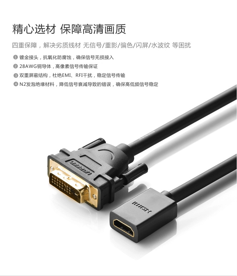 绿联DVI转HDMI线,目前两种模具同时存在,陆续更新中,图片仅供参考,具体以实物为准哦!