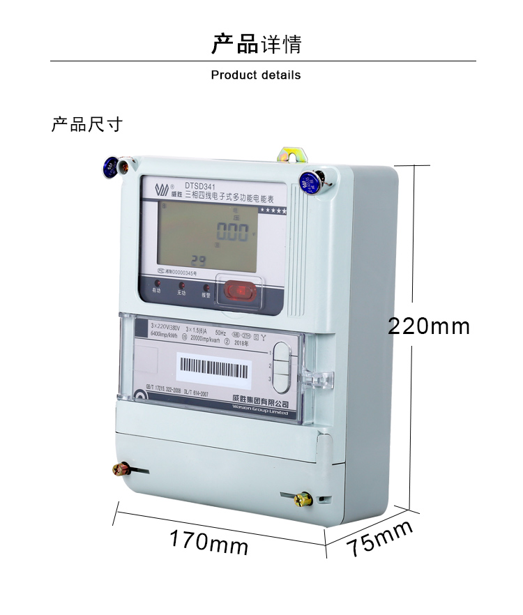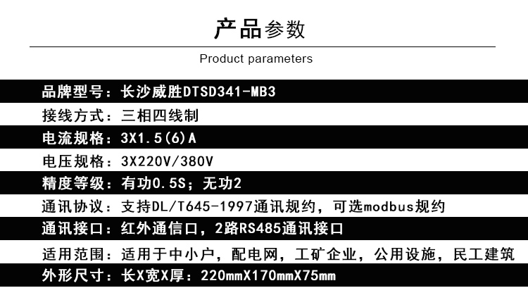 商品名称:威胜 三相四线电能表/0.5S级|3×57.7/100V|3×1.5(6)A DTSD341-MB3