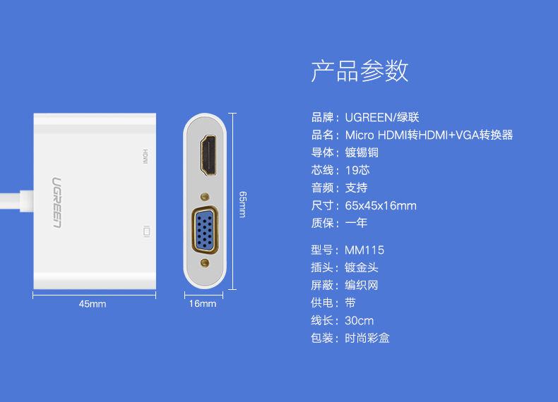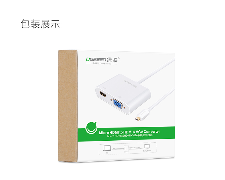 商品名称:绿联 micro/mini hdmi转hdmi+vga转换器手机平板MM115 MM136 CM101