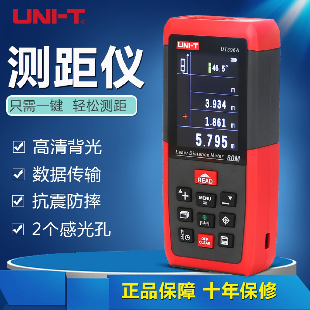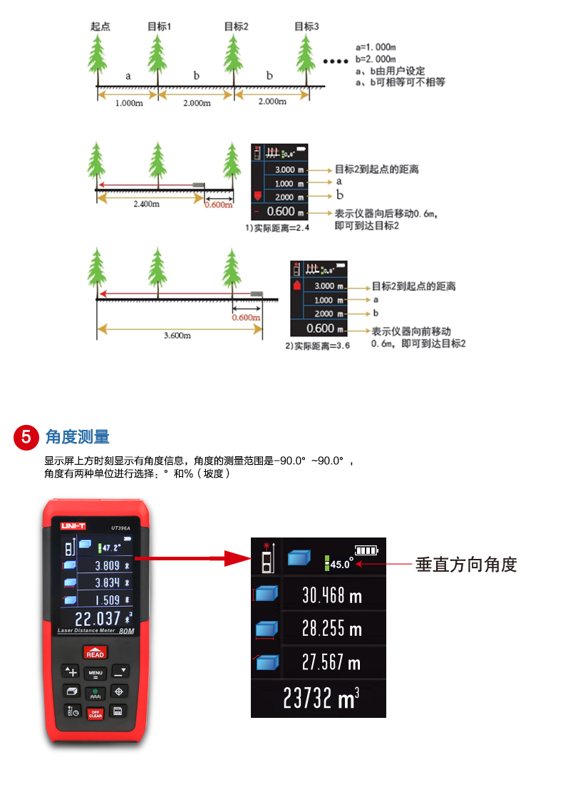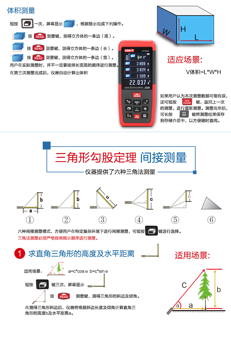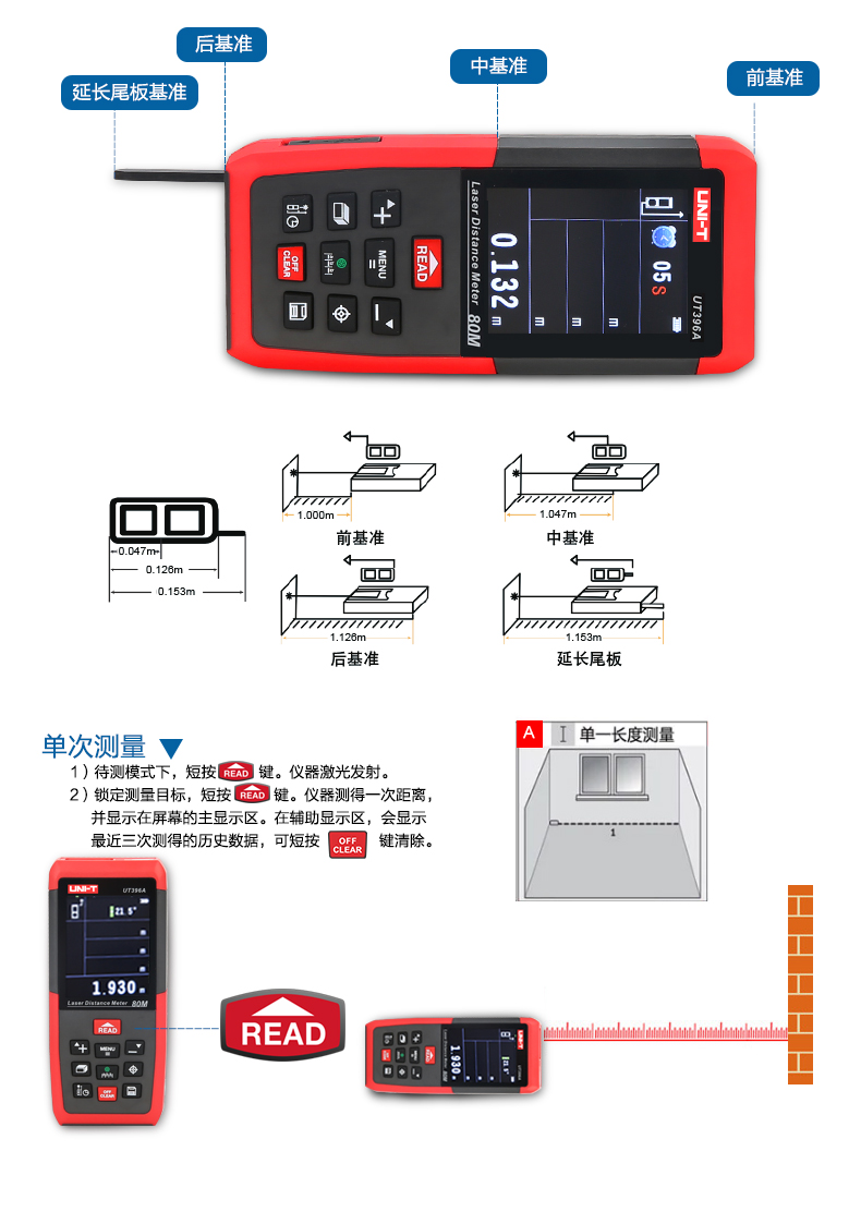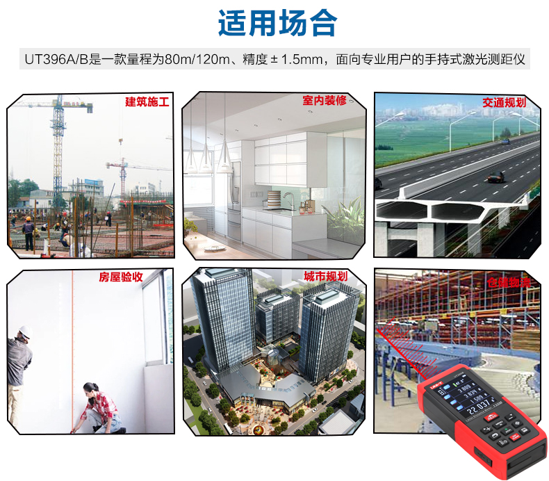 商品名称:优利德 彩屏激光测距仪 80米摄像头 120米测距电子尺 UT396A/B