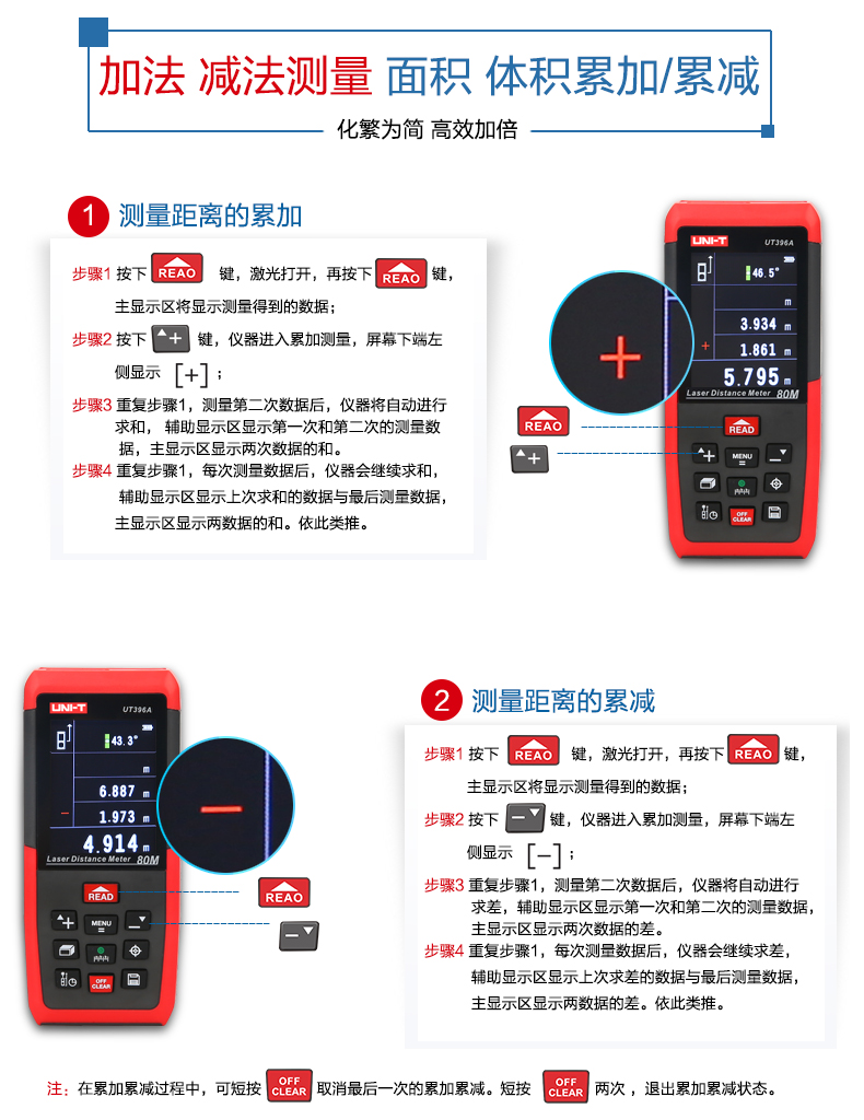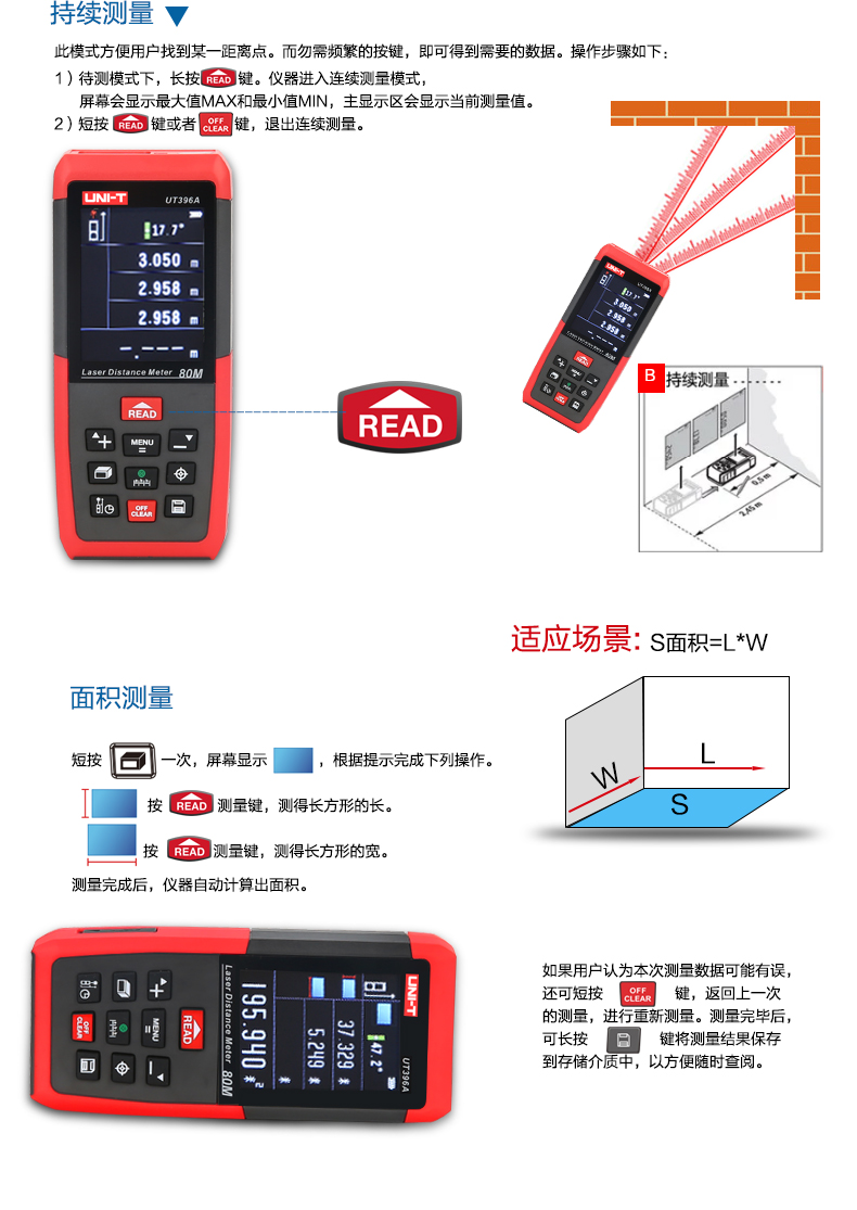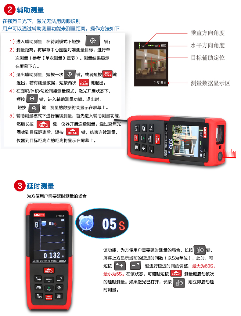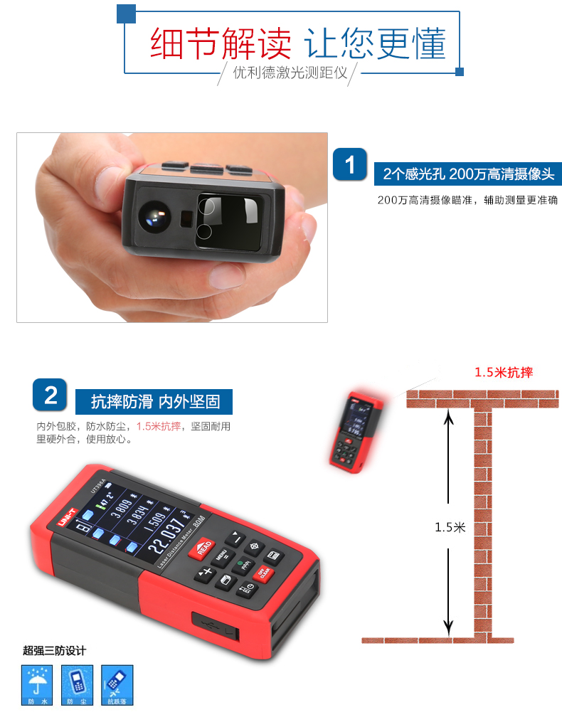 优利德 彩屏激光测距仪 80米摄像头 120米测距电子尺 UT396A/B