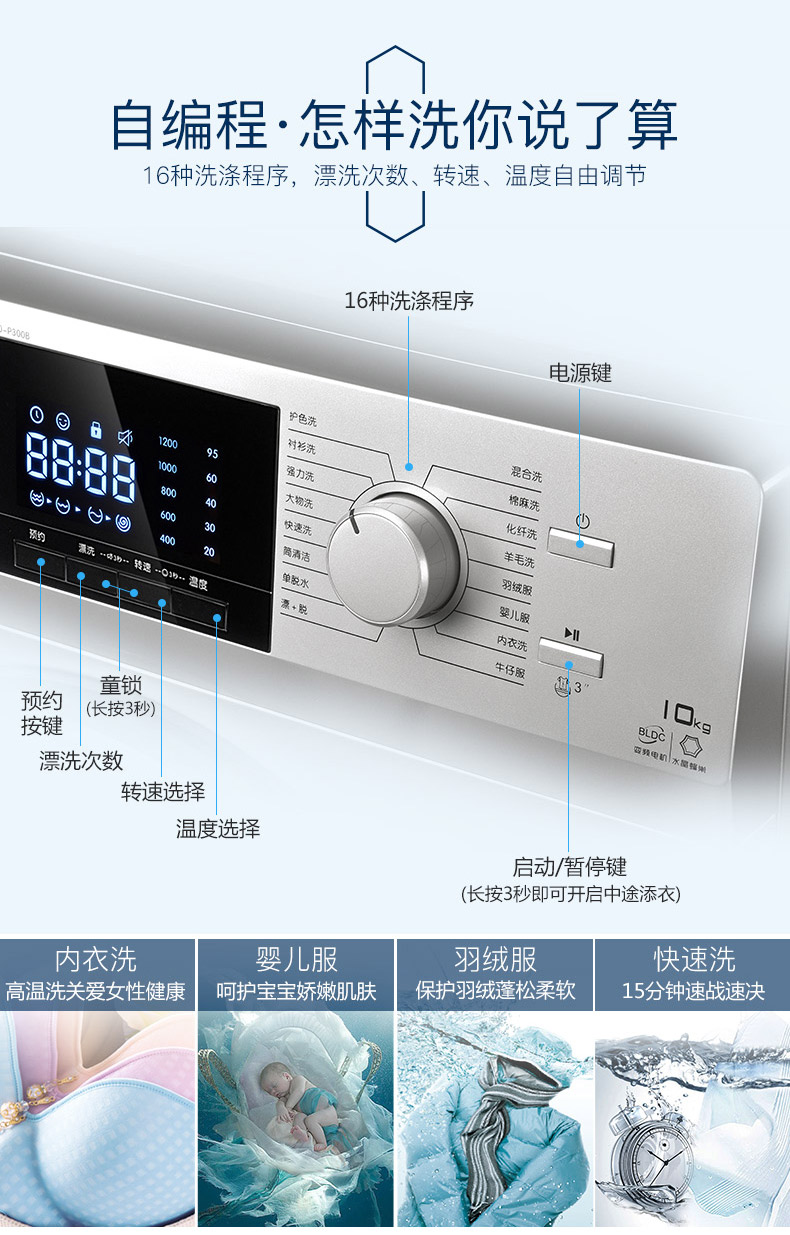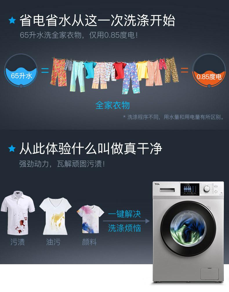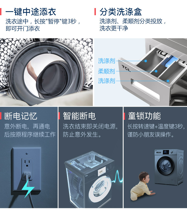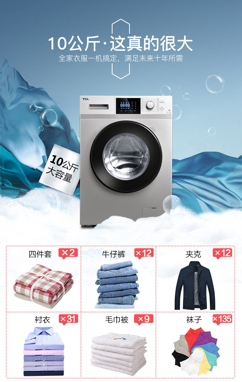 商品名称:TCL 10公斤全自动滚筒洗衣机 XQG100-P300B