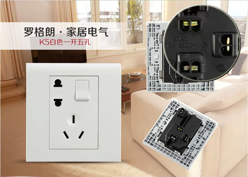 TCL罗格朗墙壁86型二三插一开五孔带开关的插座面板家用多孔插板