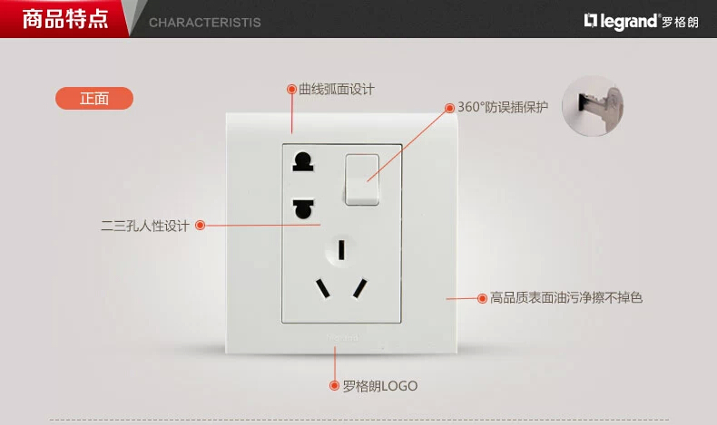 商品名称:TCL罗格朗墙壁86型二三插一开五孔带开关的插座面板家用多孔插板