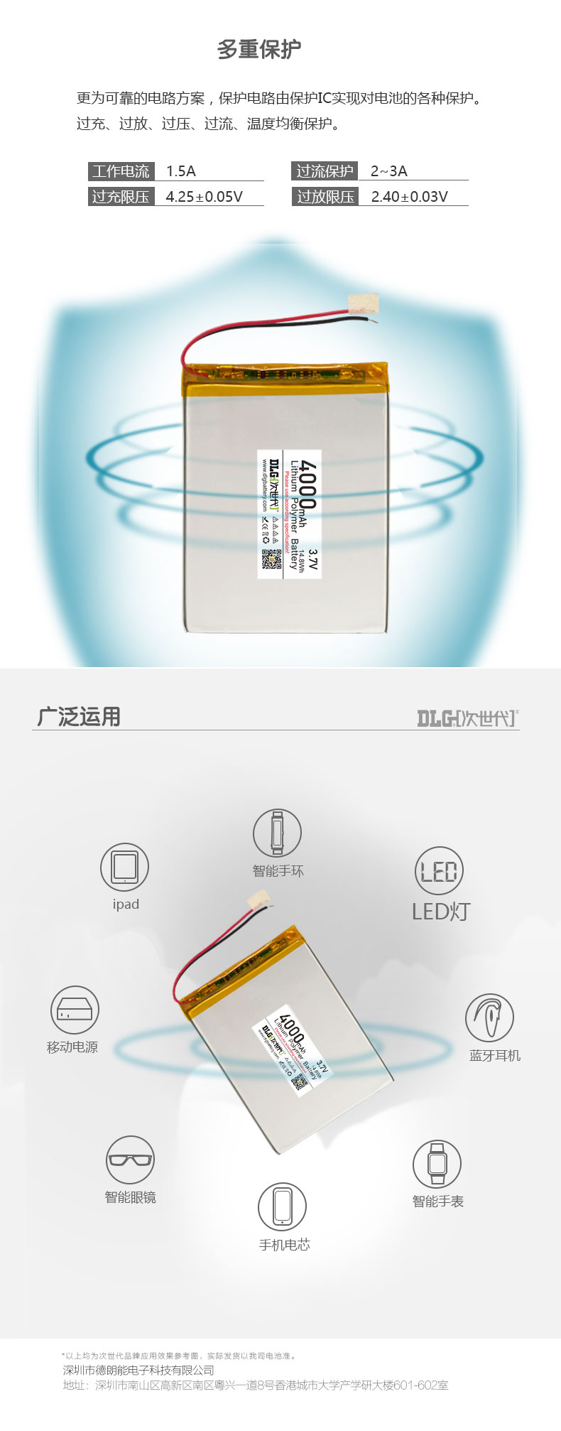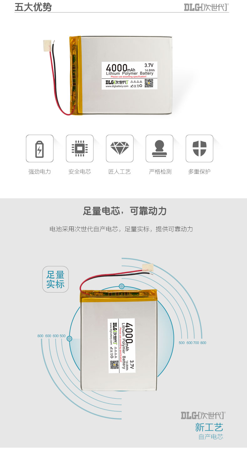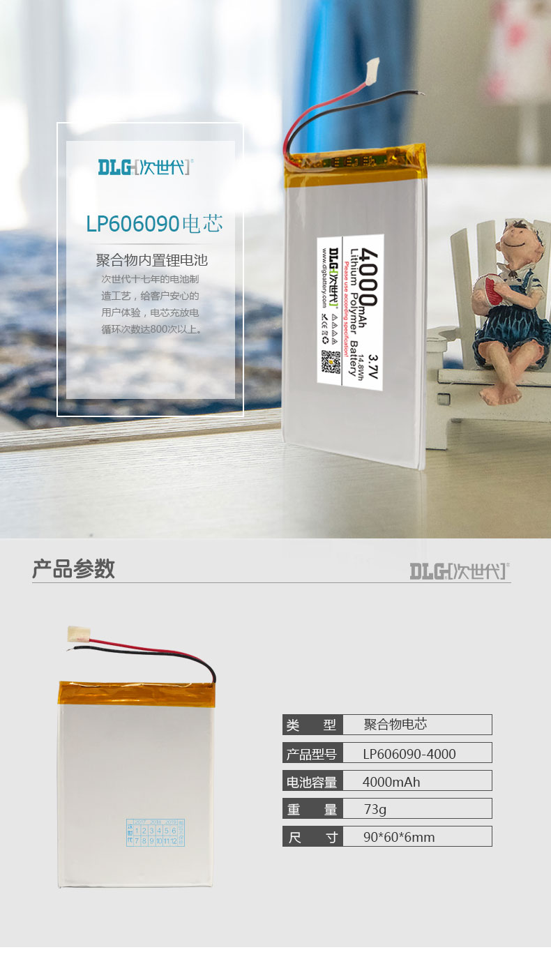 商品名称:次世代 3.7V 聚合物锂电池 606090-4000