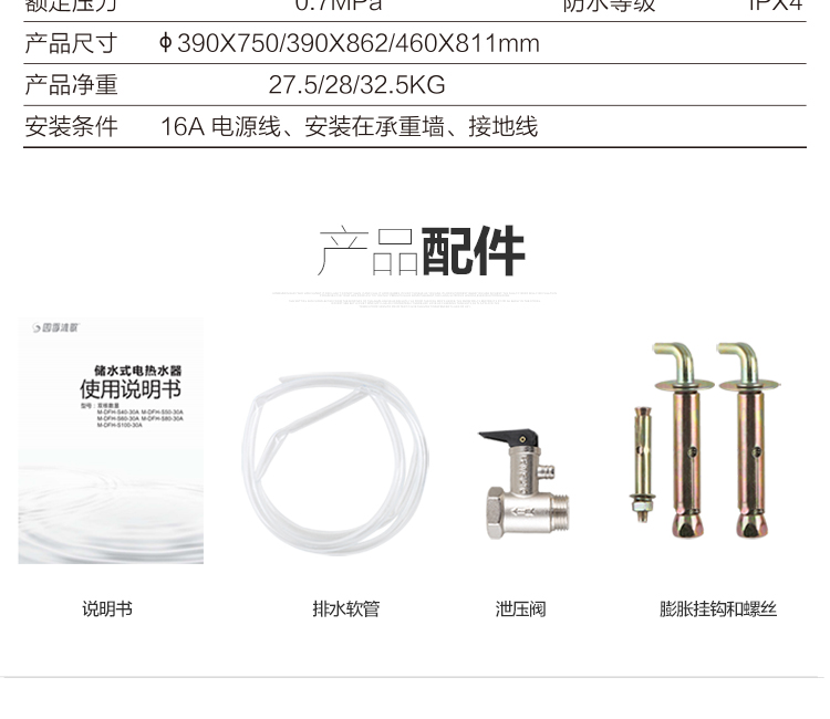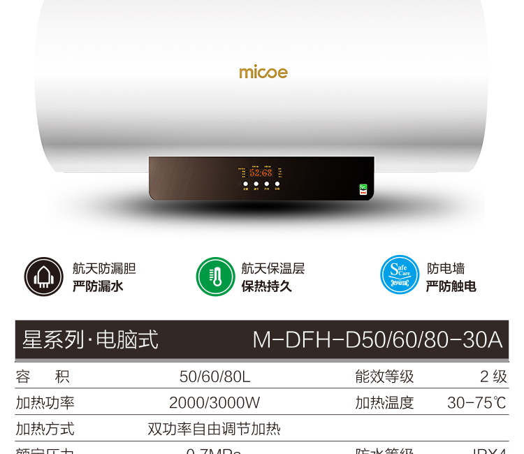 商品名称:四季沐歌 星系列热水器电家用储水60L M-DFH-D60-30A