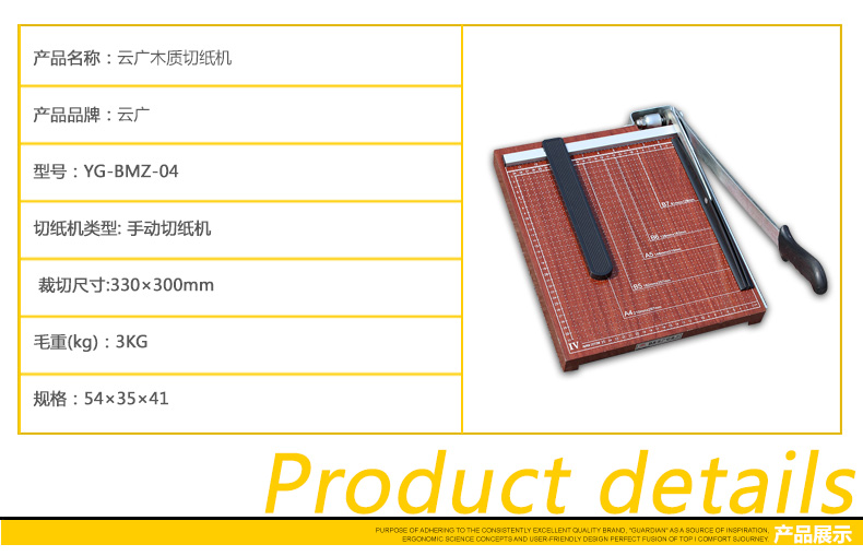 商品名称:云广 A4木质切纸刀A4裁纸刀切纸机 A3-2号