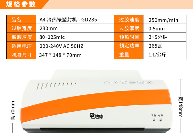 商品名称:古德 照片通用塑封机A4过塑机 285