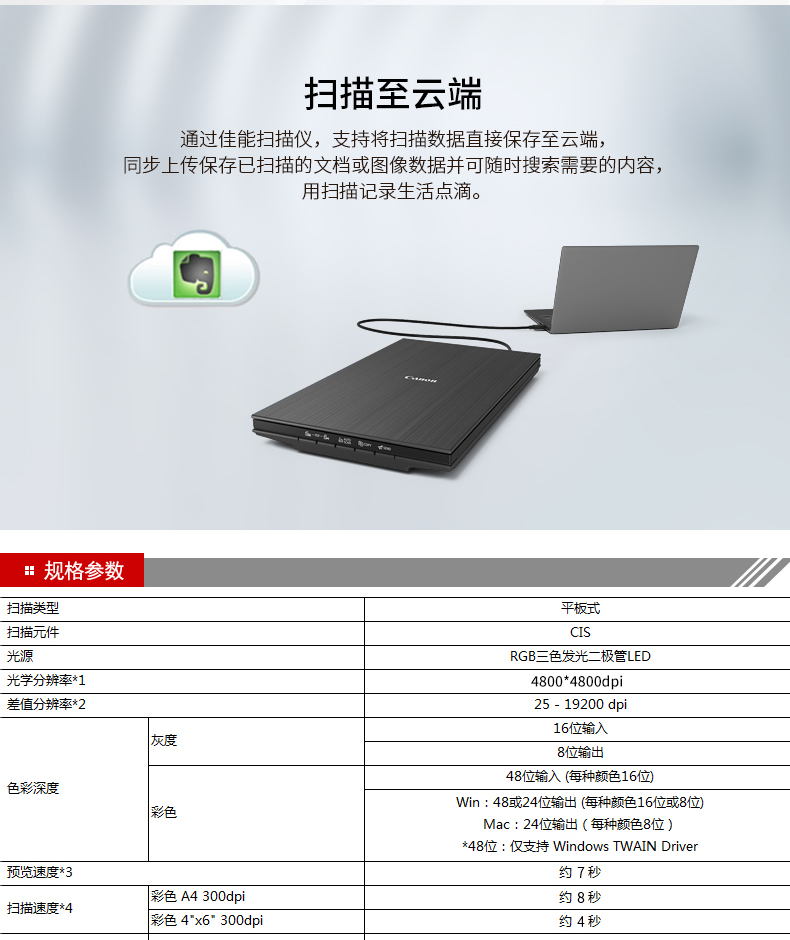 扫描速度:彩色 A4 300dpi 约 10 秒