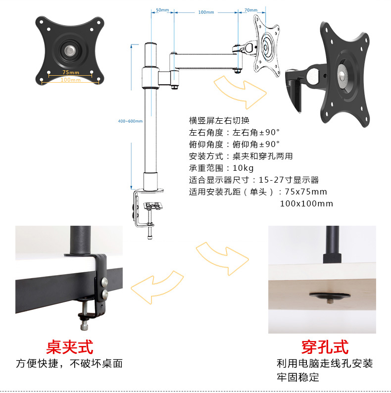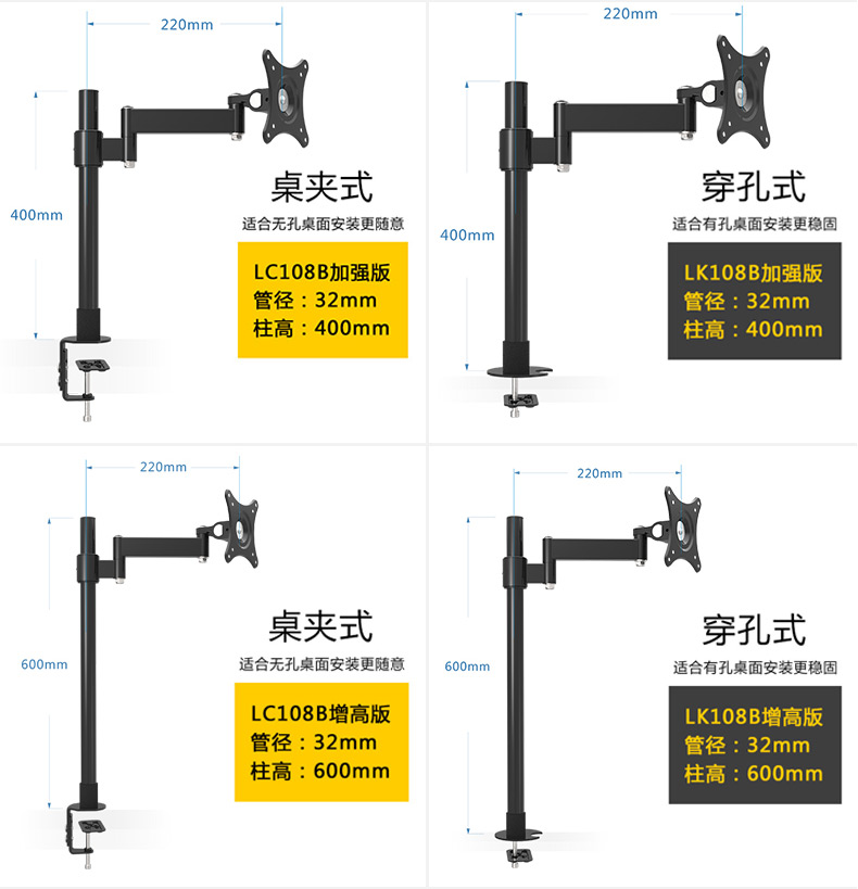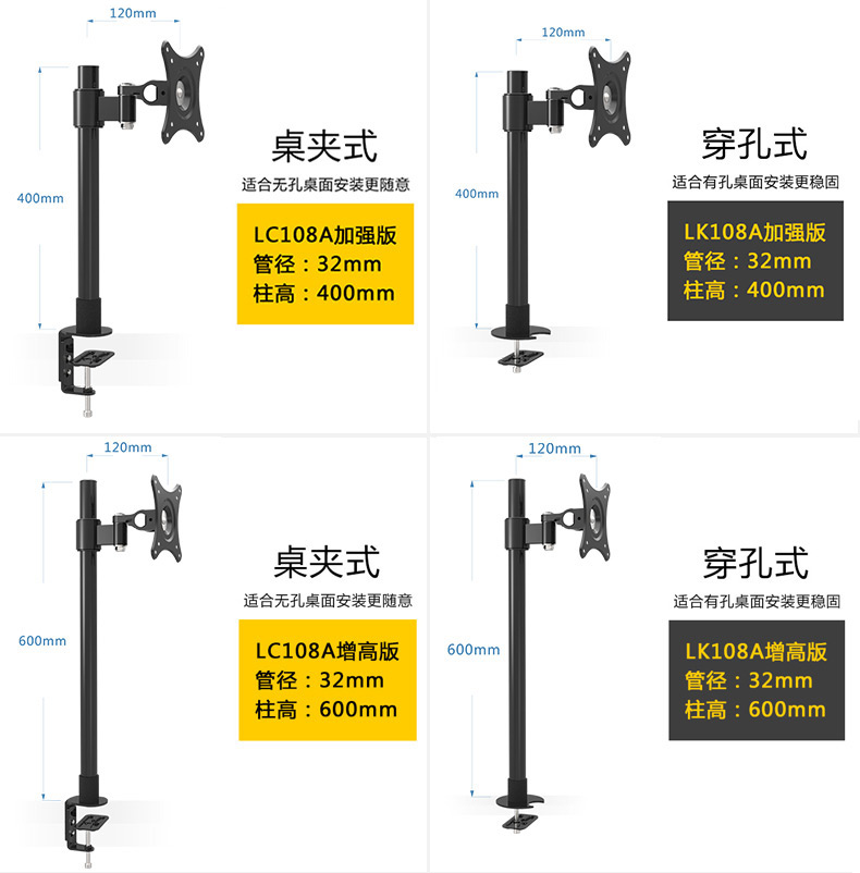 商品名称:DVHZ 19-27寸液晶显示器支架 桌面万向通用挂架轴承版加强型 L108