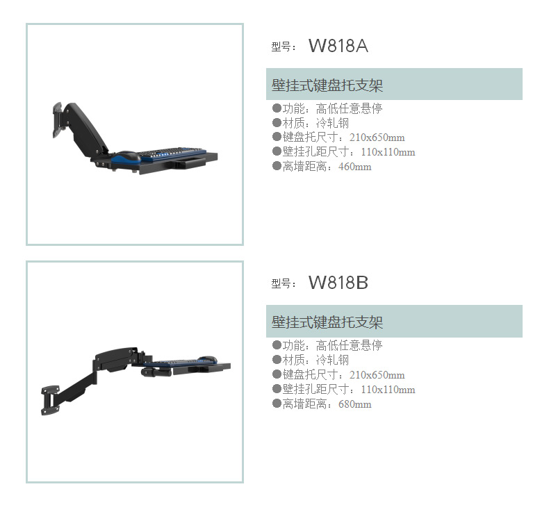 商品名称:DVHZ 壁挂键盘托支架流水线医疗支架挂架可定制 W818
