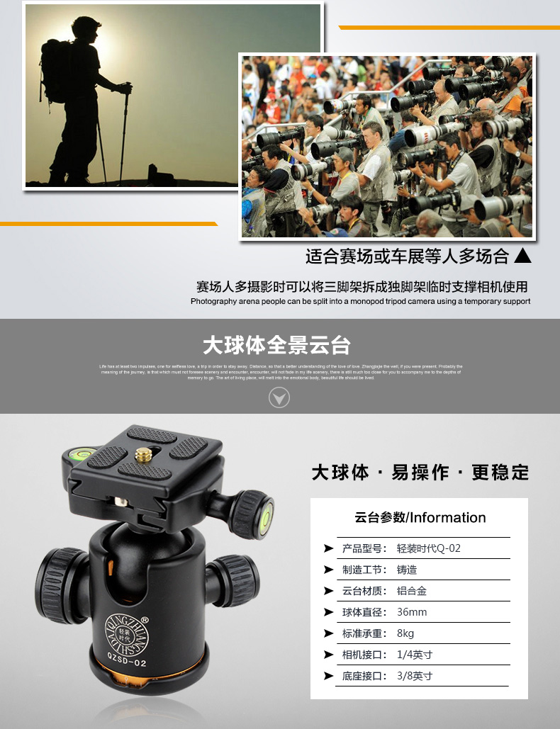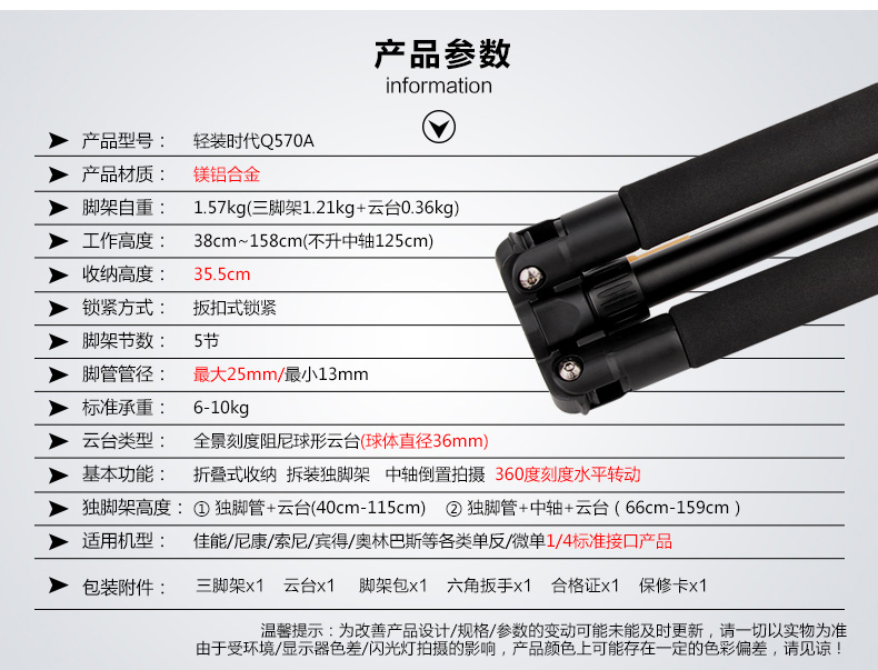 商品名称:轻装时代 摄影照相便携相机三脚架 Q570A