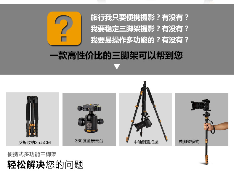 轻装时代 摄影照相便携相机三脚架 Q570A