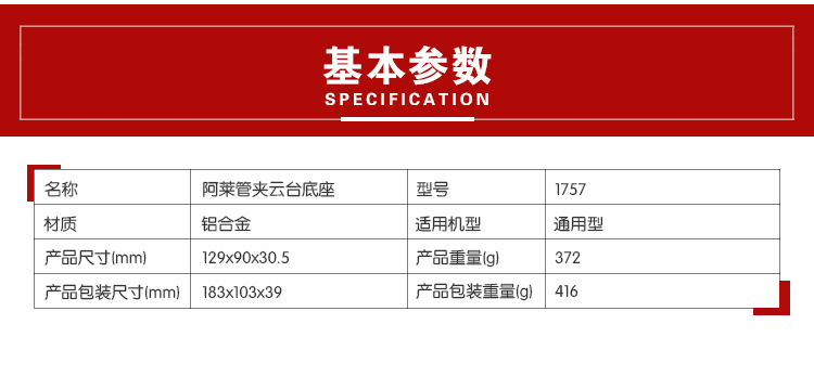 商品名称:Smallrig/斯莫格 for阿莱19MM摄影机底座摄像套件配件云台底座 1757