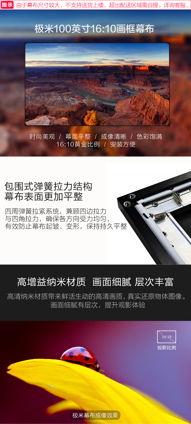 商品名称:GIMI/极米 100英寸16:10画框幕布 高清投影机软幕 100吋画框幕布