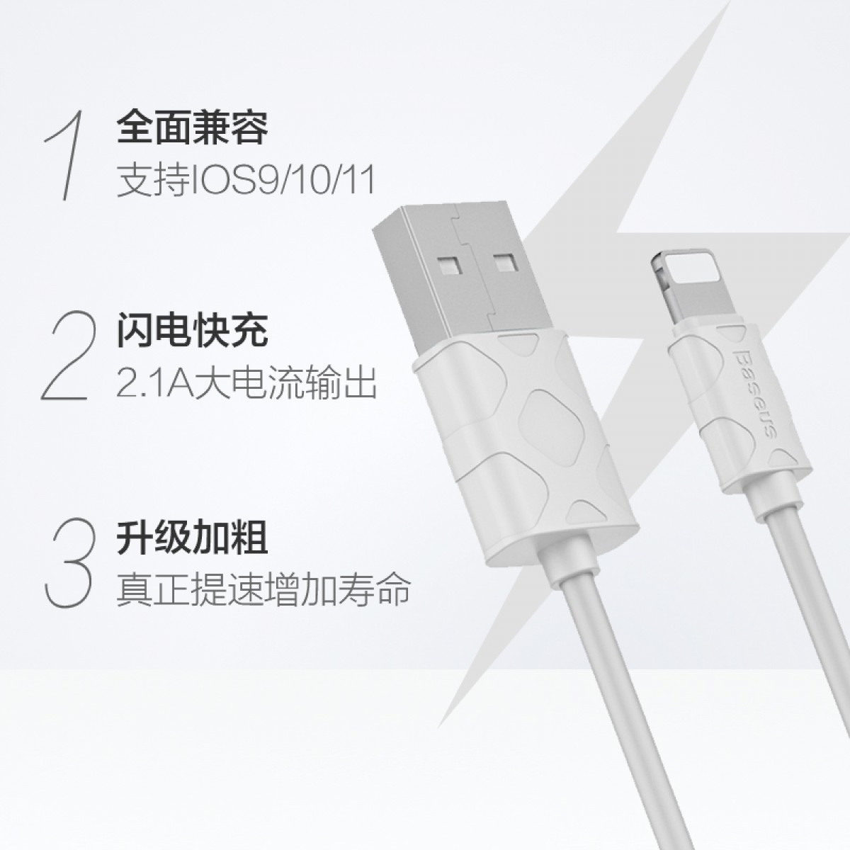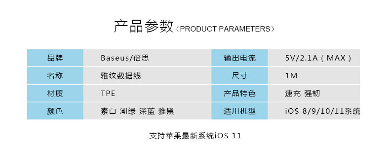 商品名称:倍思 数据线苹果iPhone专用通用iPad耐用2.1A快充充电线1米