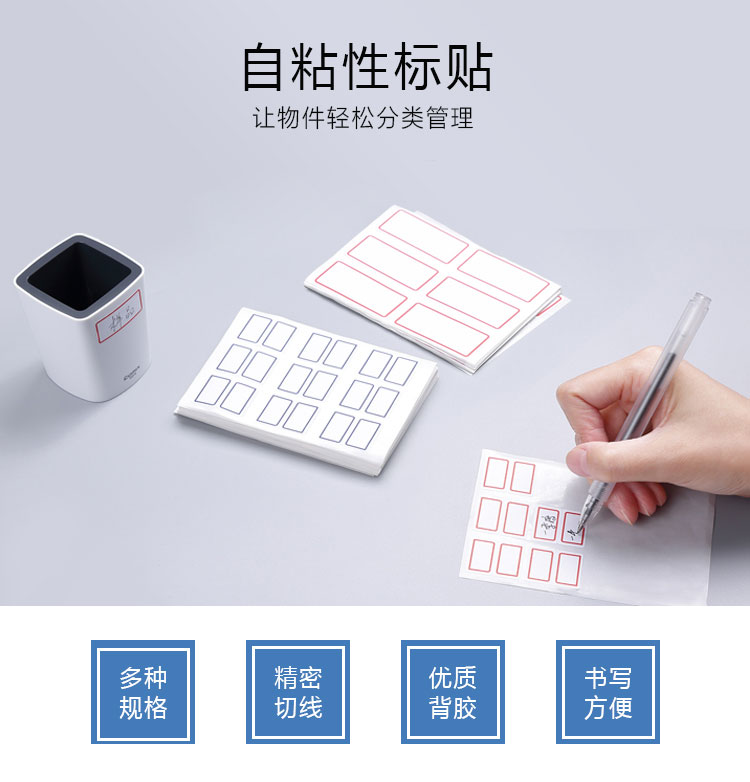 齐心 C6434 自粘性标贴不干胶标签红色方格贴纸自粘性小标贴写价格便签蓝色办公