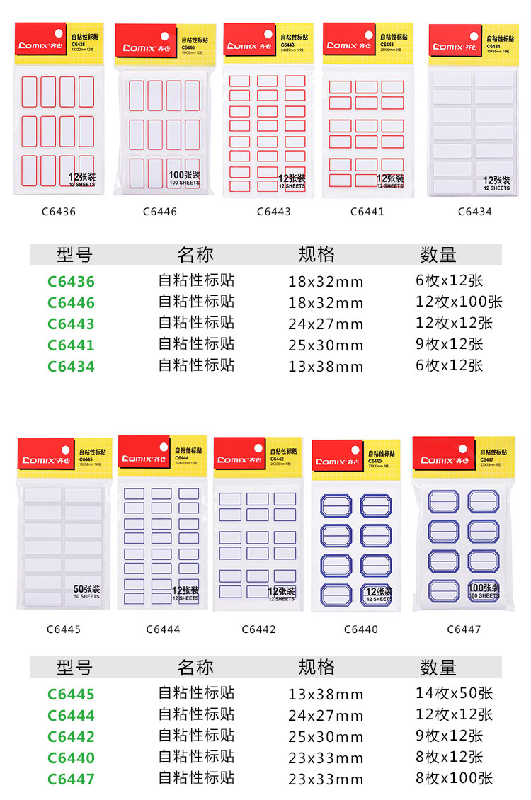 商品名称:齐心 C6434 自粘性标贴不干胶标签红色方格贴纸自粘性小标贴写价格便签蓝色办公