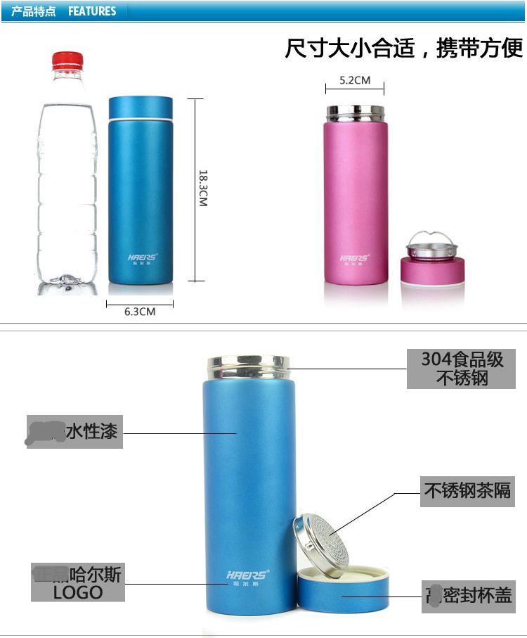 商品名称:哈尔斯 男女士水杯办公杯子随手杯304不锈钢卡通真空保温杯320ML HW-320-2