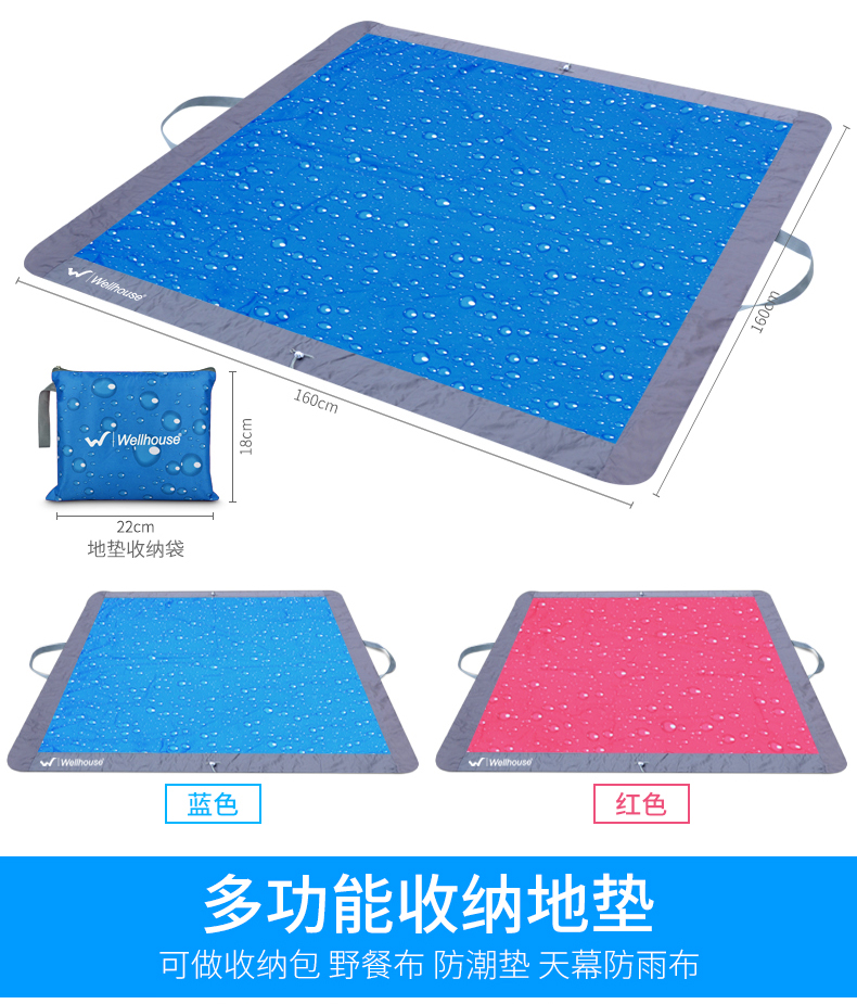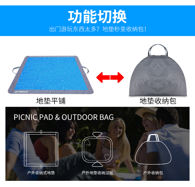商品名称:Wellhouse 收纳地垫便户外秋游野餐垫便携沙滩垫防潮垫防水折叠加厚郊游草坪