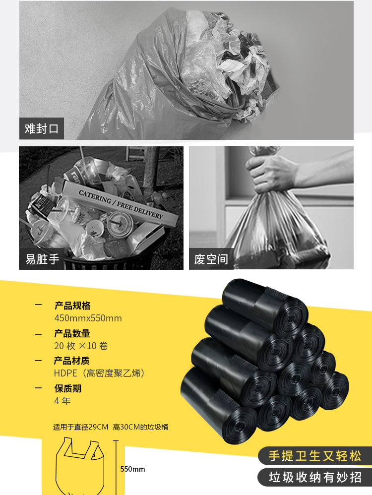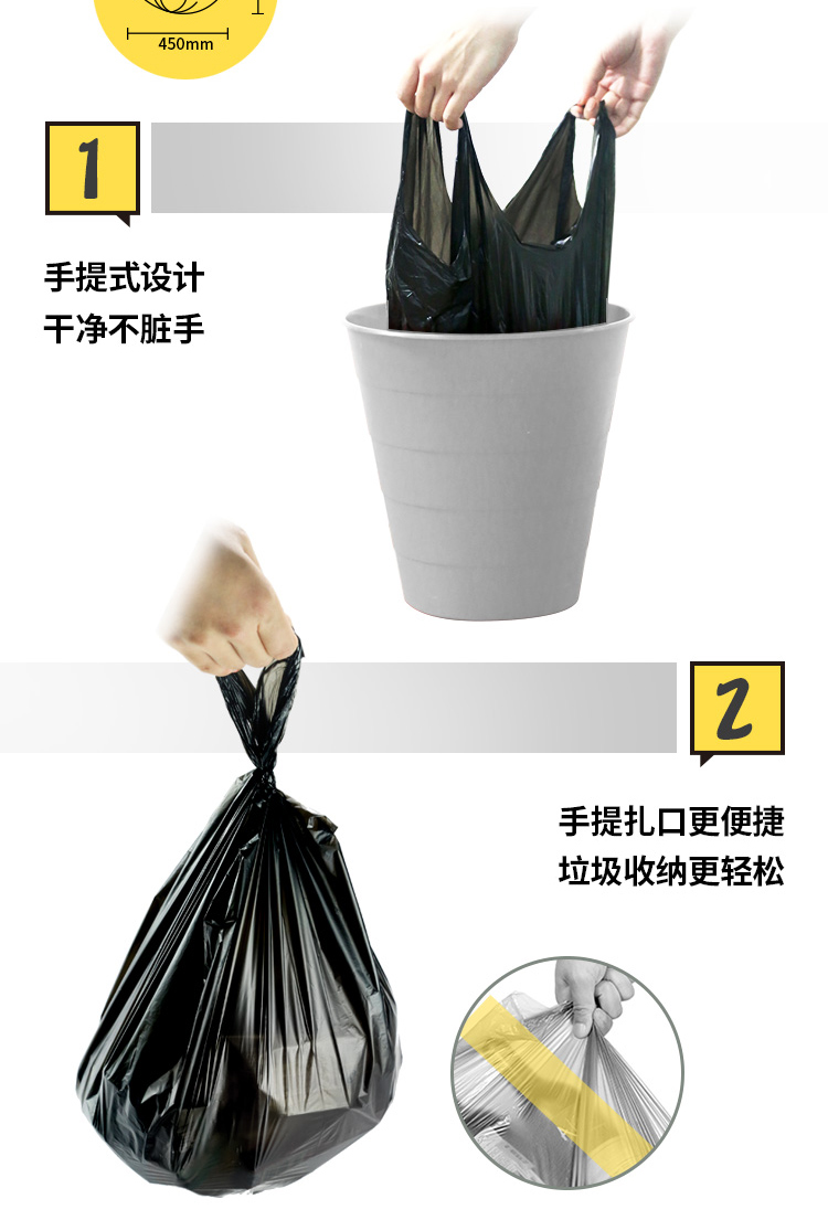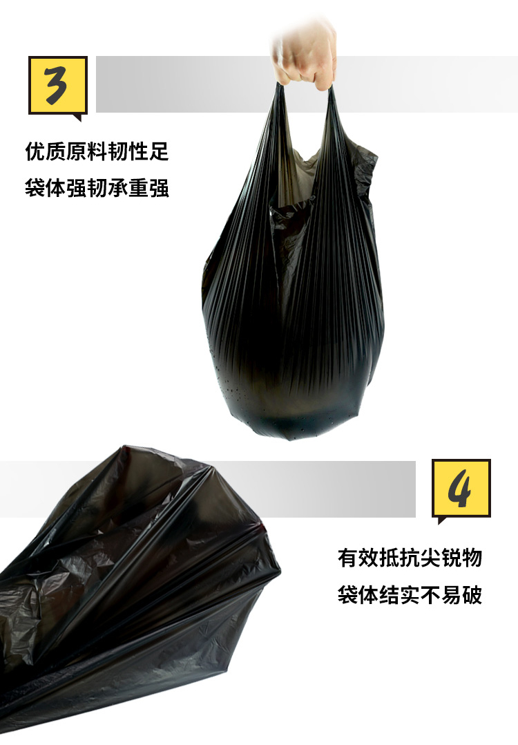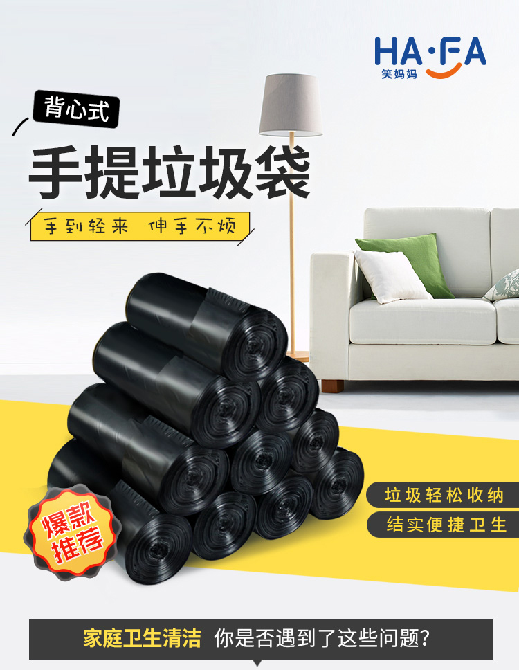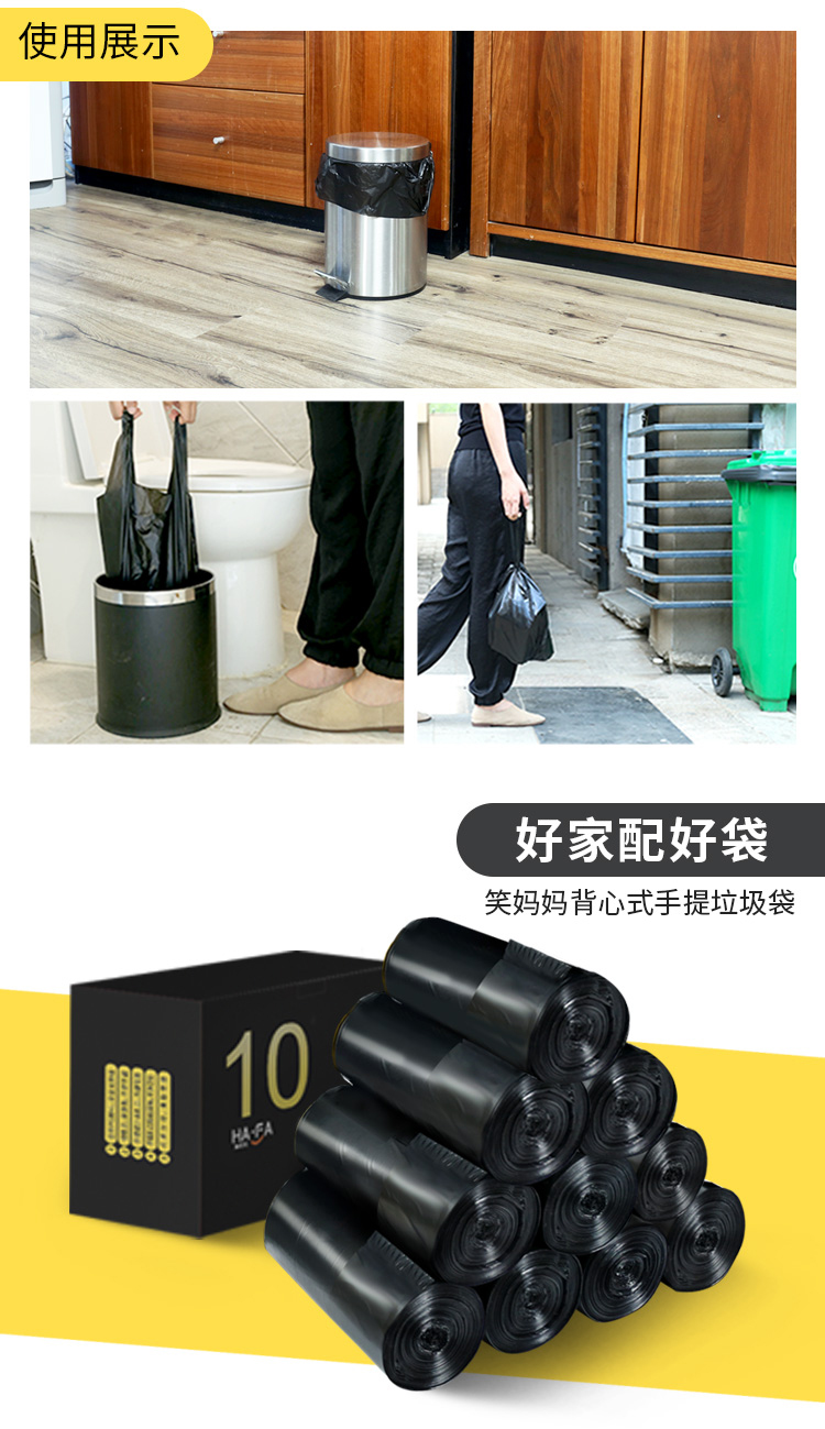 商品名称:笑妈妈 垃圾袋家用加厚手提式黑色卫生间中号一次性背心厨房塑料袋10卷 ST