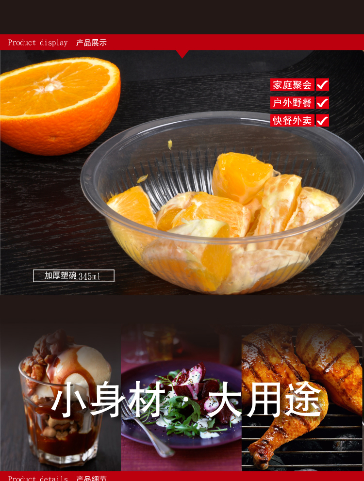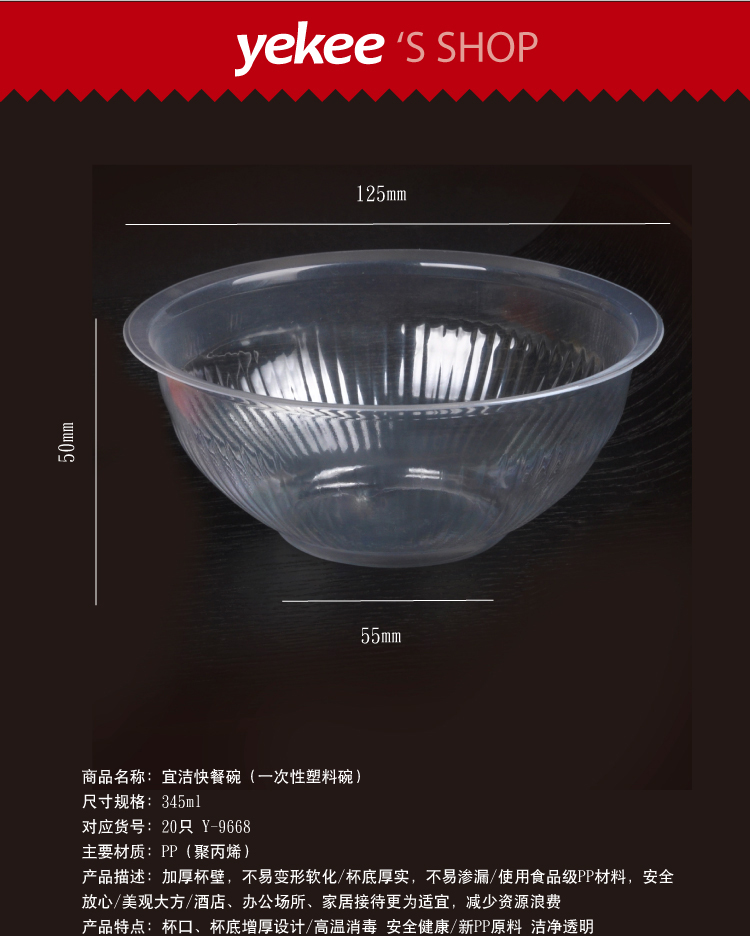 商品名称:宜洁 一次性塑料碗透明汤碗小吃碗烧烤野餐345ml(20只/袋)Y-9668