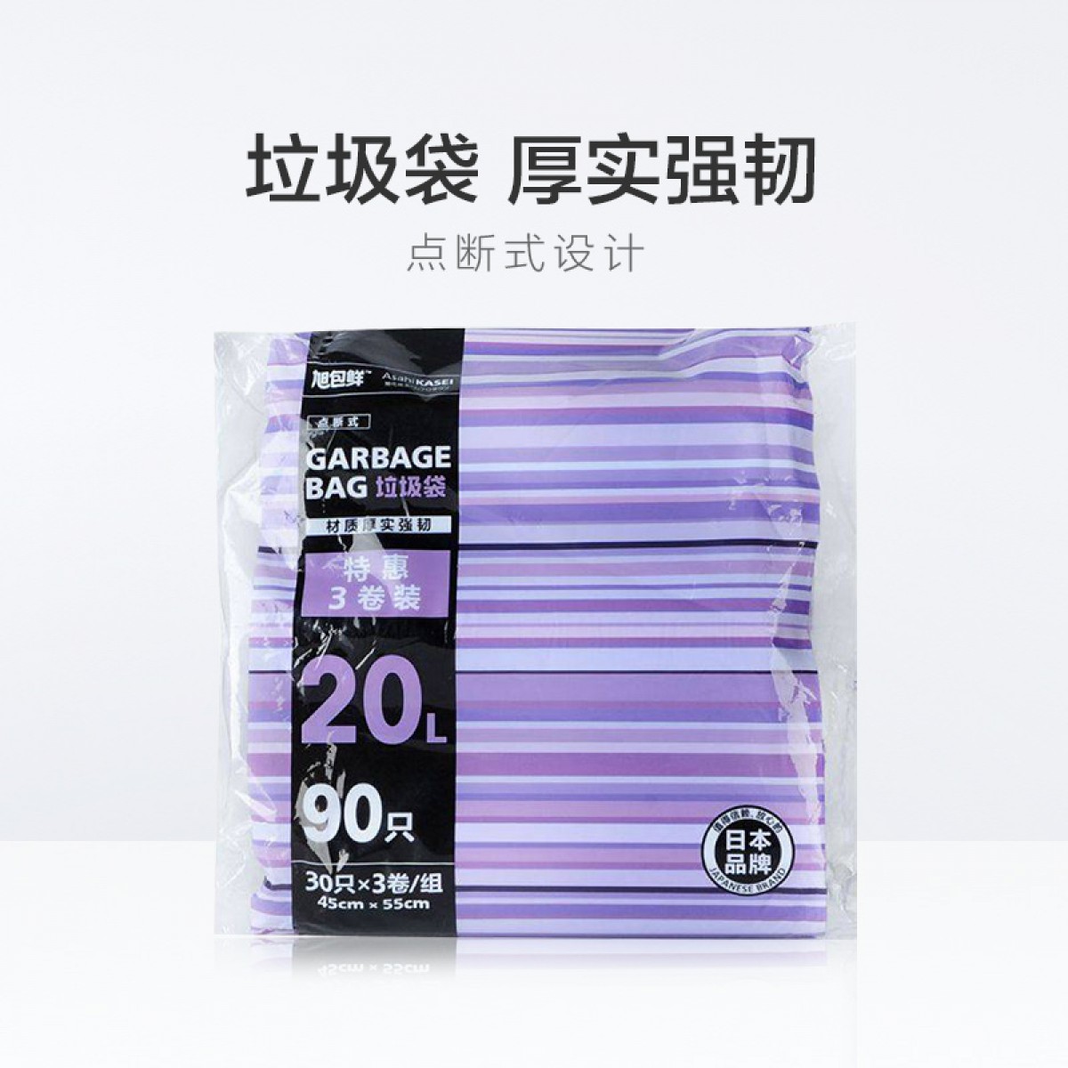 商品名称:旭包鲜 垃圾袋3连包20L垃圾袋30只*3卷厚实强韧不漏