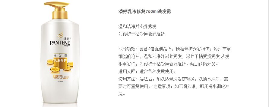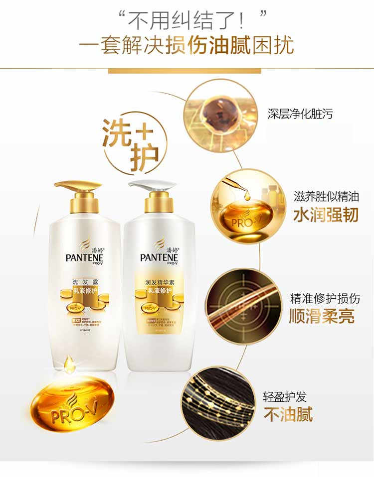 商品名称:潘婷 洗发水 护发素 乳液修护洗发露750ml+精华素750ml 套装