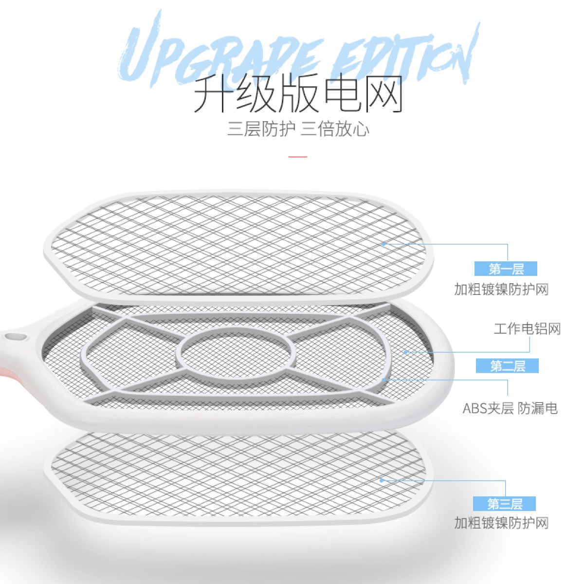 商品名称:久量/DP USB锂电池充电式 电蚊拍led灯大号网面强力驱灭蚊电器苍蝇拍1204