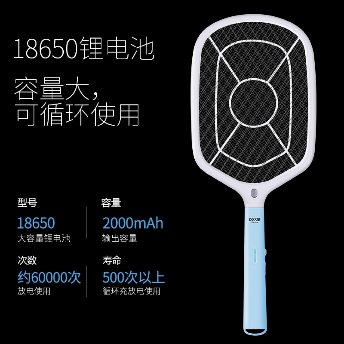 久量/DP USB锂电池充电式 电蚊拍led灯大号网面强力驱灭蚊电器苍蝇拍1204