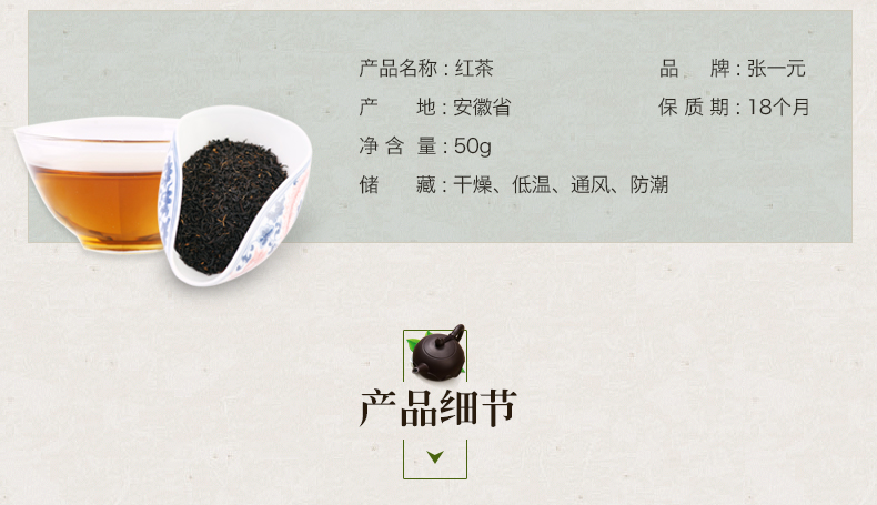 商品名称:张一元 祁门红茶 红茶茶叶 30元/50g