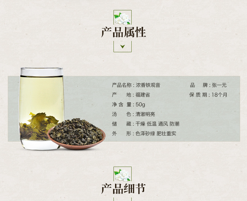 商品名称:张一元 乌龙茶 安溪铁观音 浓香型茶叶 铁观音 40/50g