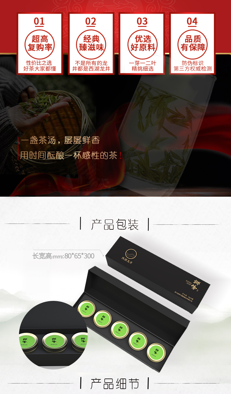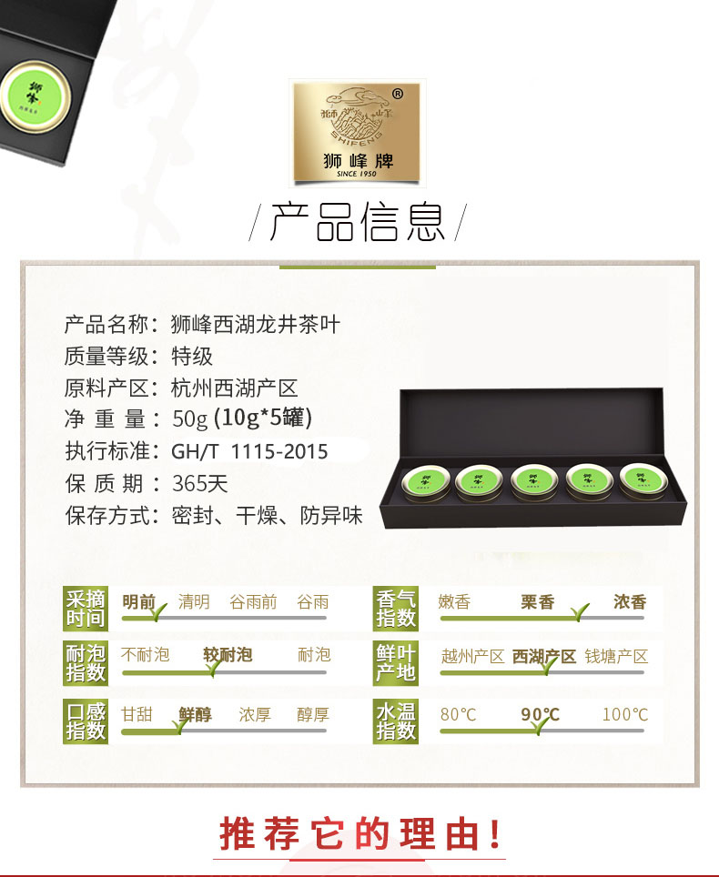 商品名称:狮峰牌 西湖龙井茶叶明前特级悦品10g*5小罐便携礼盒装