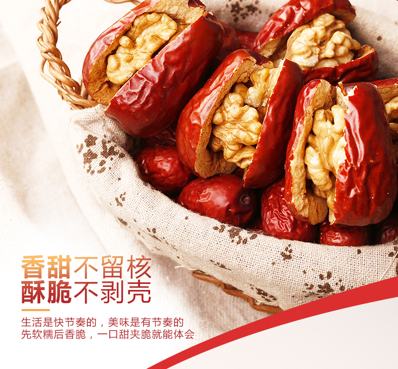 商品名称:三只松鼠 抱抱果一等红枣夹原味核桃仁258g 新疆和田大枣夹核桃肉