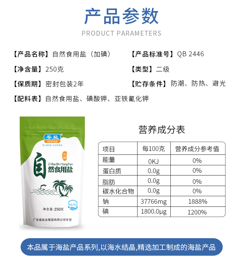 商品名称:粤盐牌 加碘天然自然食用海盐 250g
