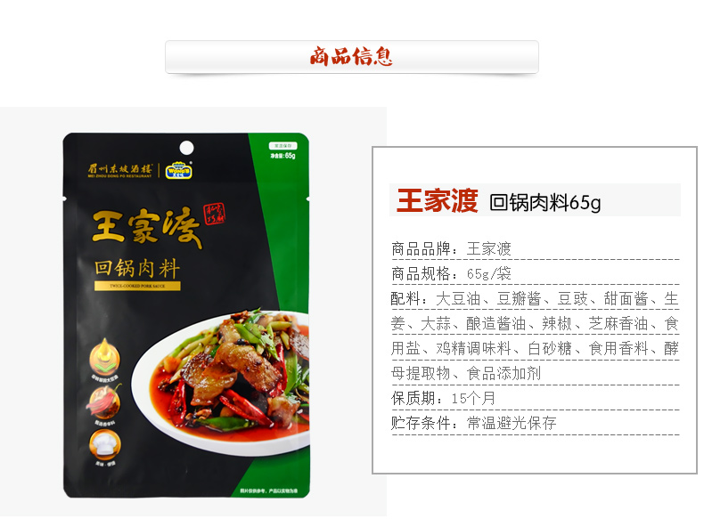 商品名称:王家渡 回锅肉65g 川菜青椒五花肉回锅肉调料干锅底料 红烧肉调料