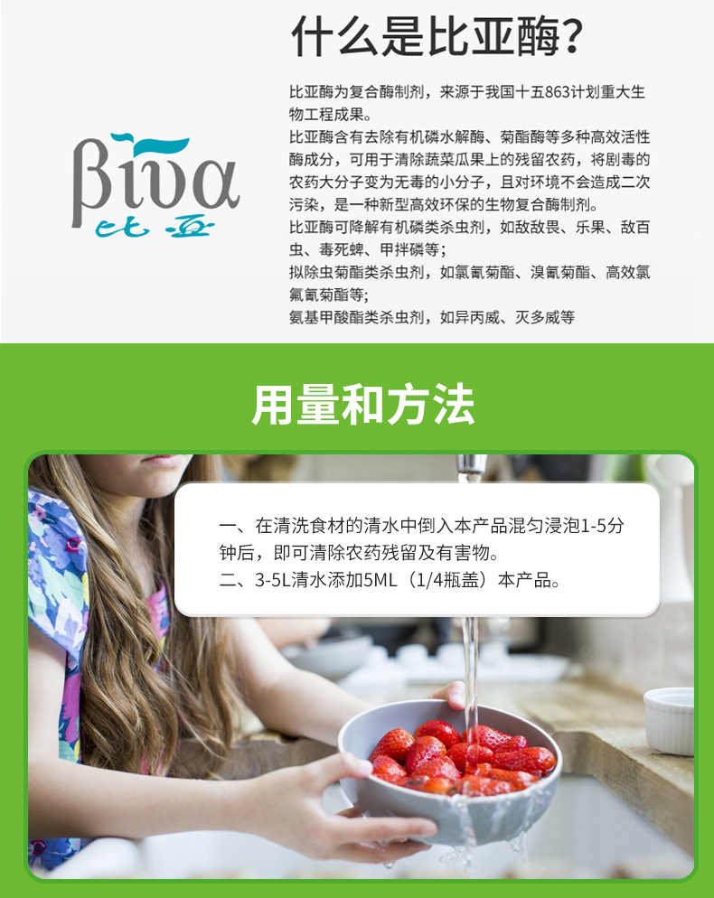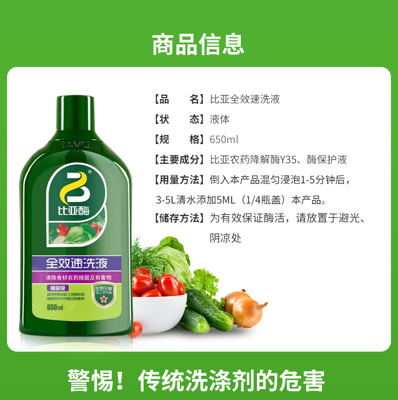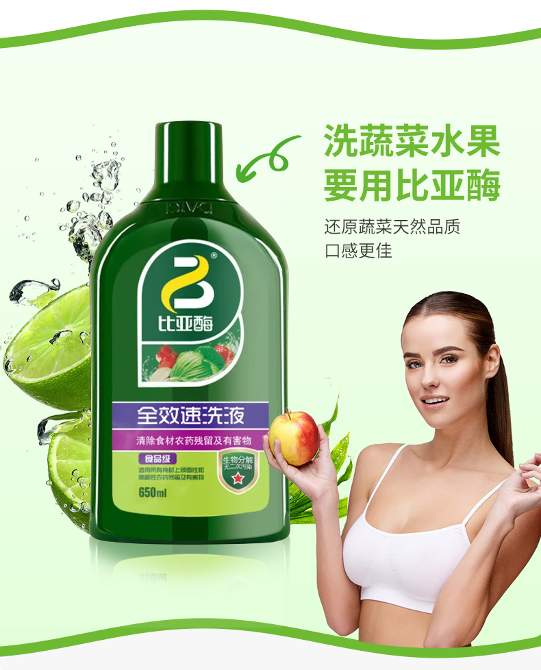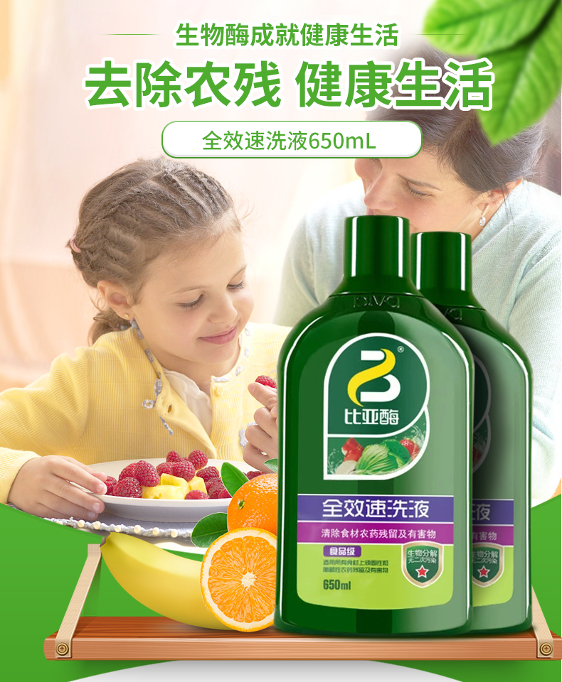 商品名称:比亚 生物酶去除农药残留果蔬洗洁精 全效速洗液650ml*2瓶
