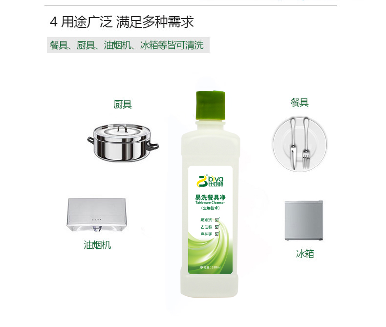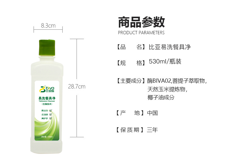 商品名称:比亚 生物酶除菌去油护手家用洗洁精 易洗餐具净530ml*3瓶