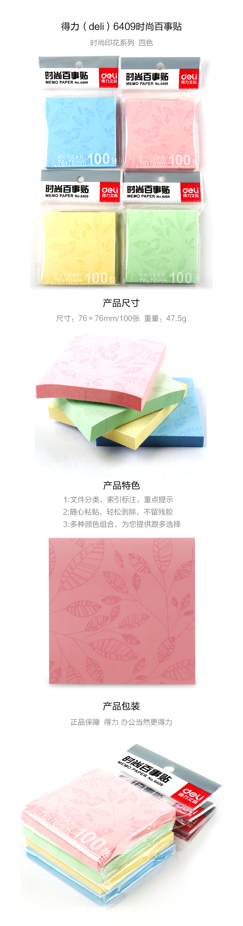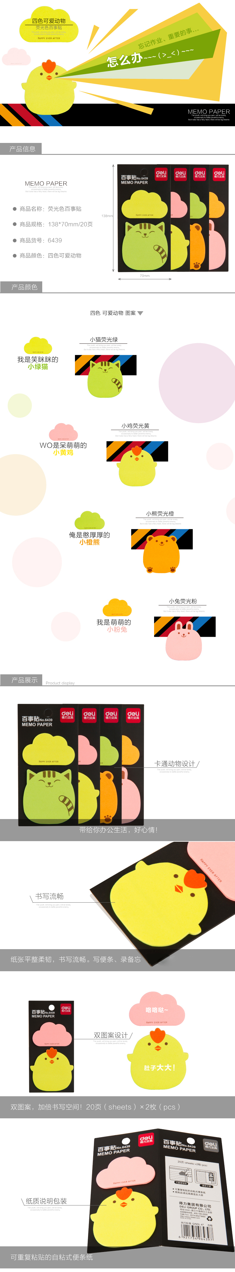 商品名称:得力 6439 荧光百事贴 卡通动物告示贴 便条纸N次贴便签贴随手贴