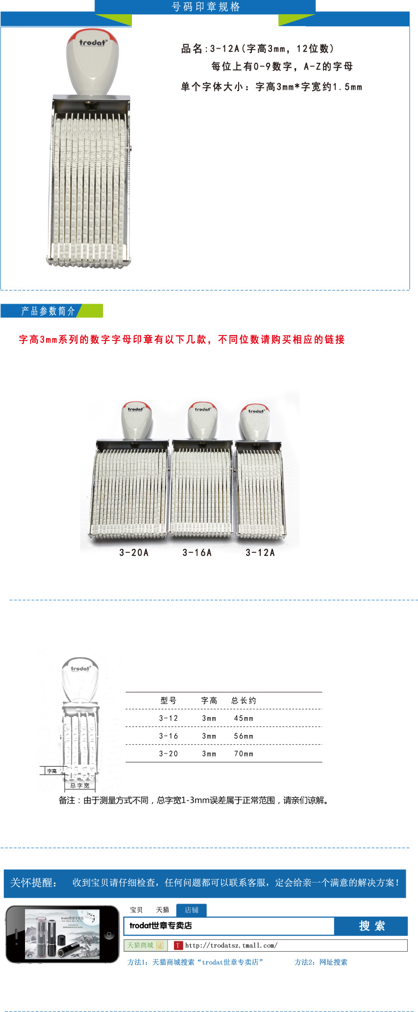 商品名称:Trodat/卓达 3-12A 字高3mm系列活字中英文组合章号码章 转轮印章